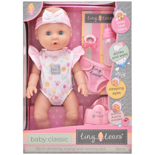 Tiny Tears Classic Drinking, Crying and Wetting 38cm Baby Doll