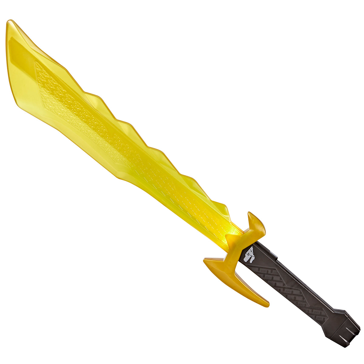 With Motion-Activated Light and Sound FX , this saber features colour-changing LEDs and motion-activated light and sound effects! The Megafury Saber is used by the five core Rangers in Dino Fury, so fans can imagine becoming their favorite Ranger from the TV series morphing into action and taking command of the Megazord.