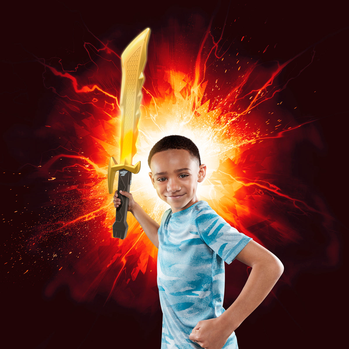 Slash and swipe or press the button on the Megafury Saber to activate the sounds and lights