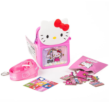This mini bag is packed with surprises and features a decal Hello Kitty face and Hello Kitty branding in a fun, confetti filled window.