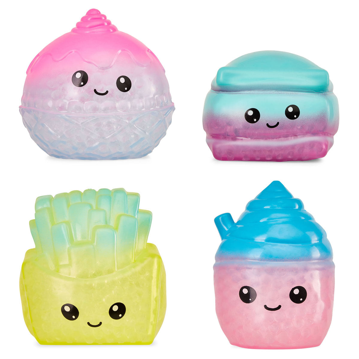These fun food themed squishy fidget toys are really big and really squishy! There are 4 fun squishy friends to collect including Frankie Frappe, Charlier Chips, Izzy Ice Cream and Sammy Smore (sold separately).