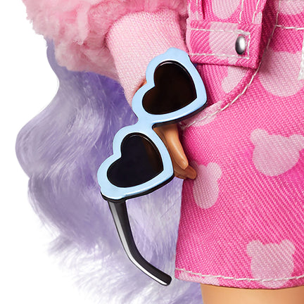 Bring plenty of fashion fun to their playtime with this Barbie Extra Millie Doll with Periwinkle Hair and Pet Bulldog Figure.