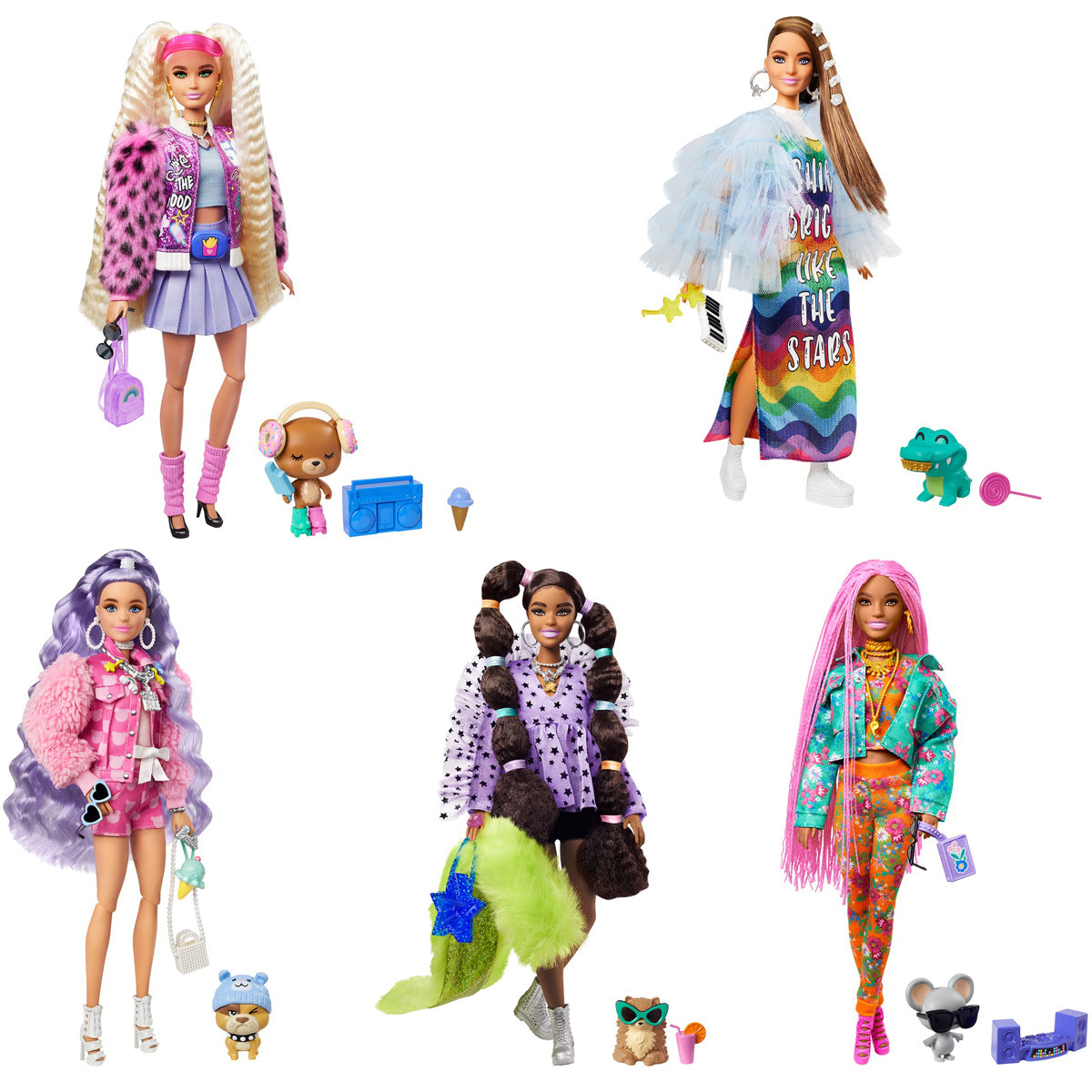 Set includes 1x Barbie Extra Doll, 1x Pet Bulldog Figure and more than 15 fashions and accessories