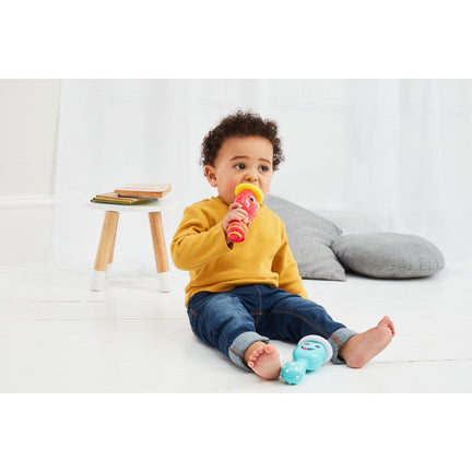 The Singing Maracas are a great way of introducing your baby to music in an interactive way, letting them become part of the fun and allowing them to discover that their actions are rewarded with fun sounds and tunes. Encourage singing along for even more musical fun, and help them discover their natural rhythm.