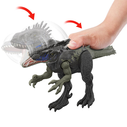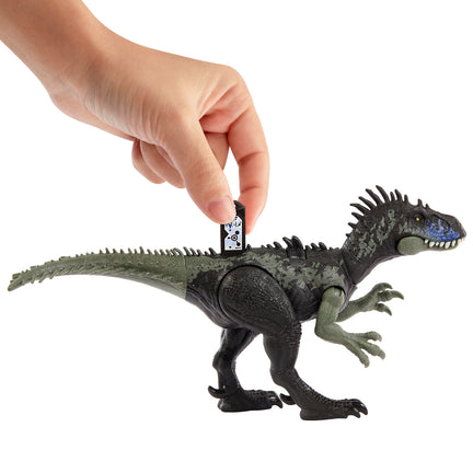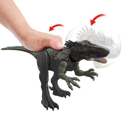 These Jurassic World Dominion dinosaur figures have roaring sounds, species-specific attack action and movable joints. Each medium-sized dinosaur attack motion is specific to the species, from surprise tail whips to neck-stretching chomps and head butts, for realistic play. Just press down on the hip area to activate.