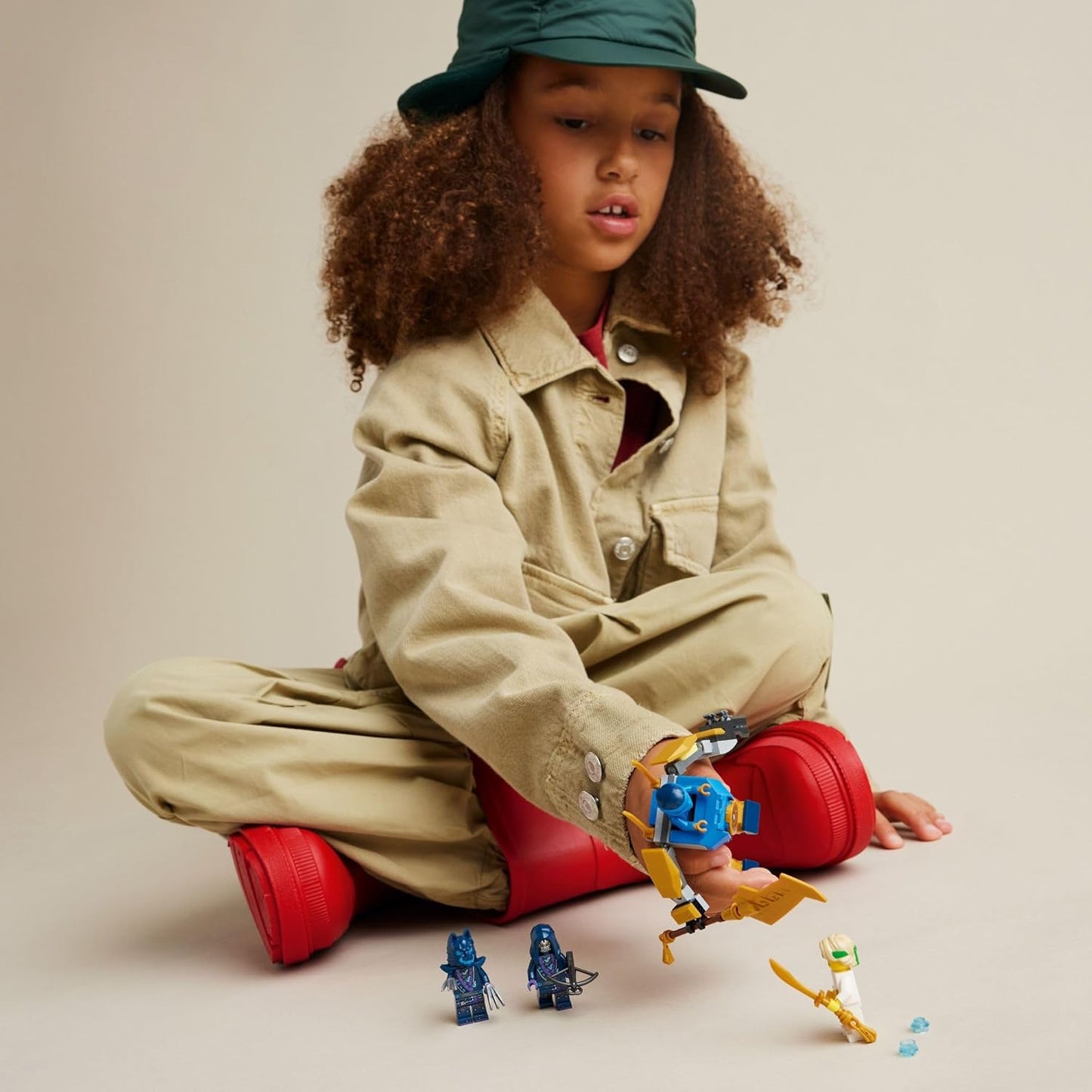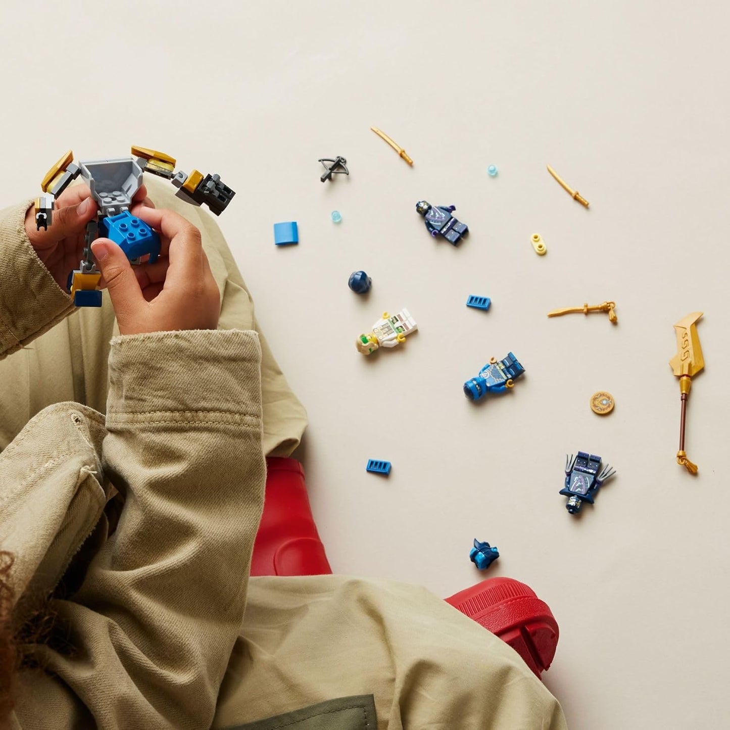 Boys and girls aged 6+ can play out all-action battle scenes from season 2 of the NINJAGO Dragons Rising TV show with this Jay’s Mech Battle Pack (71805) adventure toy. This ninja construction toy for kids features a cool mech figure with posable arms, legs and torso that wields a large golden sword and can fire studs from its 2 shooters. This ninja adventure toy is packed with 4 NINJAGO minifigures and lots of accessories. Jay is armed with a golden sword and the Master Lloyd minifigure has 2 golden katana swords. The Wolf Mask Claw Warrior has a long set of claws on each hand and the Wolf Mask Guard comes with a crossbow. The rest of the LEGO NINJAGO range of buildable ninja toys for kids includes dragons, vehicles and temples so fans can role-play adventures with their heroes. Each adventure toy set can be created with the LEGO Builder app, which guides you and your child on an easy and intuitive building adventure. Zoom in and rotate models in 3D, save sets and track your progress. Contains 78 pieces.