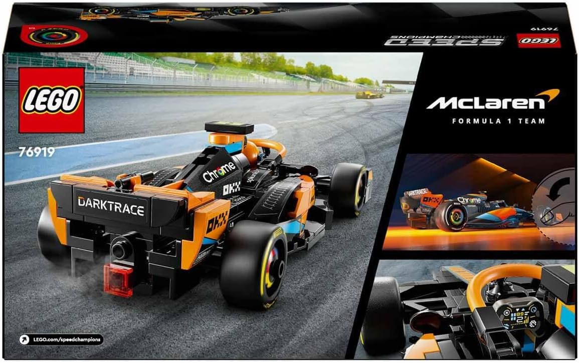 The LEGO Speed Champions McLaren Formula 1 Racing Car 2023 (76919) is a toy car for collecting, building and displaying. Girls and boys aged 9 and up can recreate the streamlined toy speedster with some legendary design details of the original, developed to celebrate McLaren Racing's 60th anniversary and competed for the Formula 1 World Cup in 2023. Model of the McLaren speedster with many faithful details: black and orange lacquer, team sponsor logos, tyres with Pirelli print and orange cockpit protection. In addition to the buildable racing car, the set also includes a racer minifigure that your child can put behind the wheel and send into thrilling races. LEGO Speed Champions sets let kids and avid car fans build replicas of some of the world's most legendary speedsters. Your child will love to recreate the high-quality models with their numerous distinctive details with LEGO bricks. Each of these toy cars can also be constructed using the LEGO Builder app, which takes you and your child on an easy and intuitive building adventure. This buildable LEGO car made of 245 pieces is 4 cm high, 19 cm long and 7 cm wide. Contains 245 pieces.