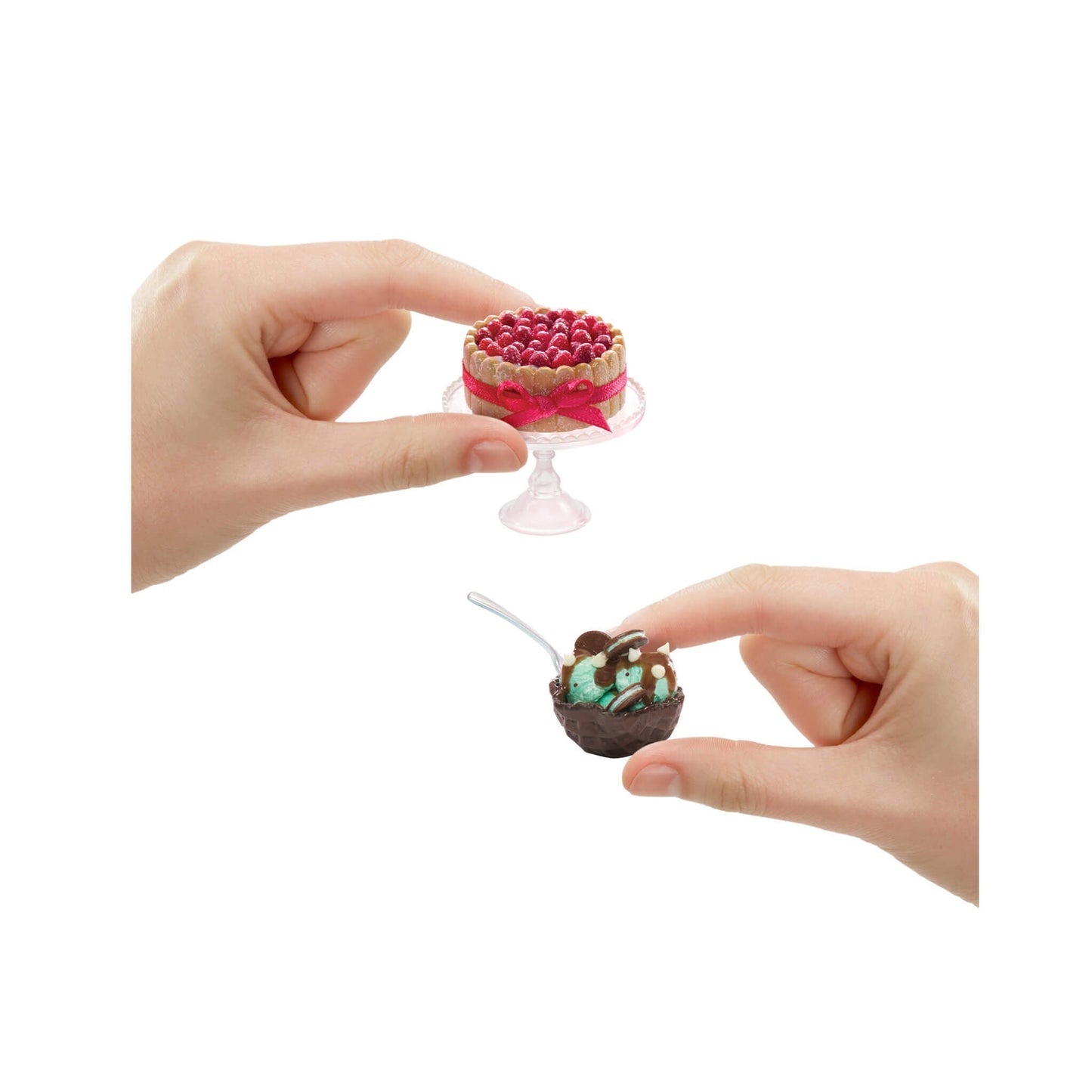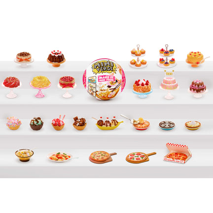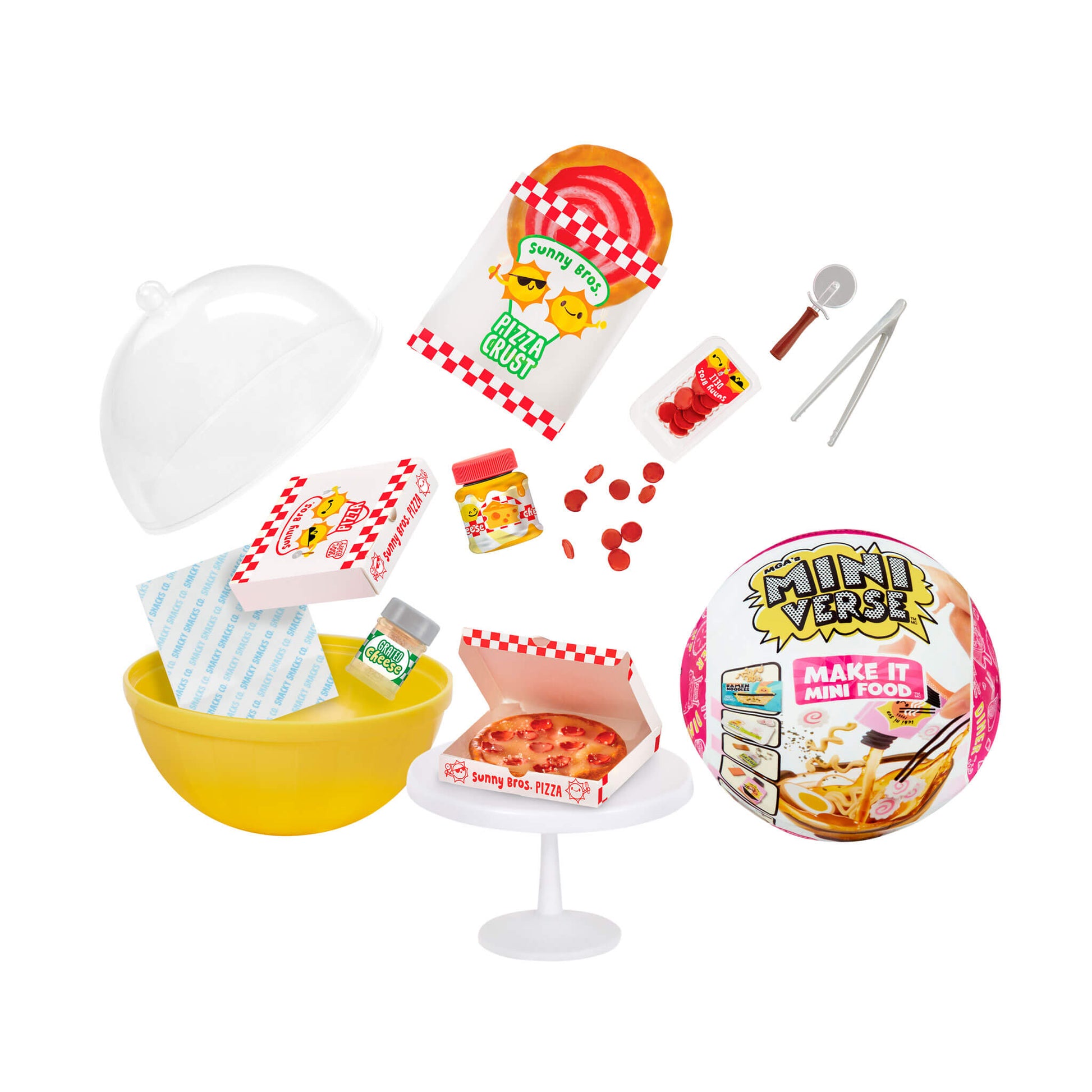 Introducing MGAs Miniverse, Make It Mini Food! The only mini collectible that you can PREP, SET & DISPLAY. Each ball comes with realistic mini ingredients and kitchen accessories to make your own mini replicas of your favorite snacks and desserts! Each pack is a SURPRISE, so you dont know which mini you have until you unwrap it! Compare the contents of your pack with the included collectors guide to see which mini you have. Follow the recipe card on the back to prepare your mini. Once youre done making your mini, set your replica under any UV light until the resin is cured. When its ready, you have a collectible ready for display!
