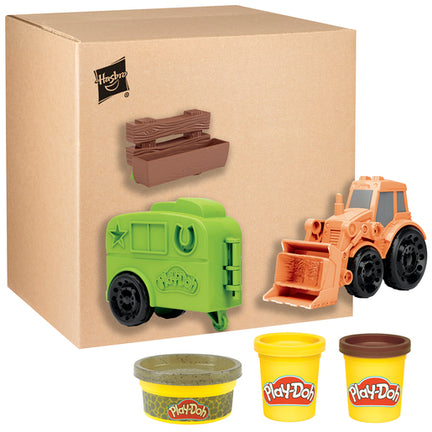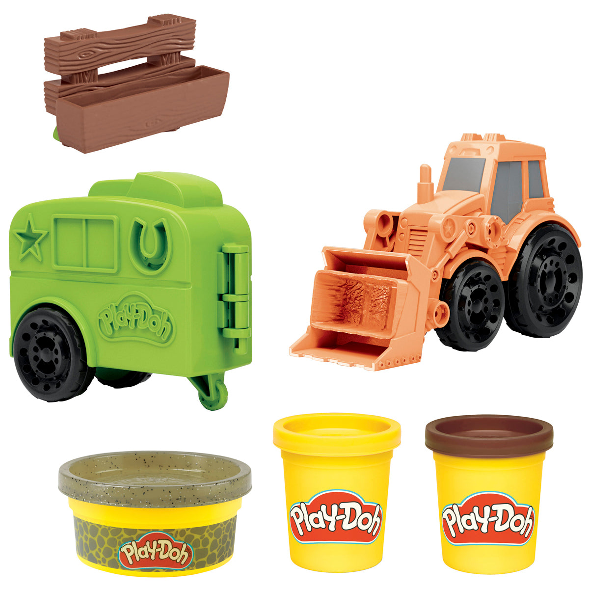 Features 1 x tractor, 1 x horse trailer mould, 1 x trough and 3 x cans of Play-Doh