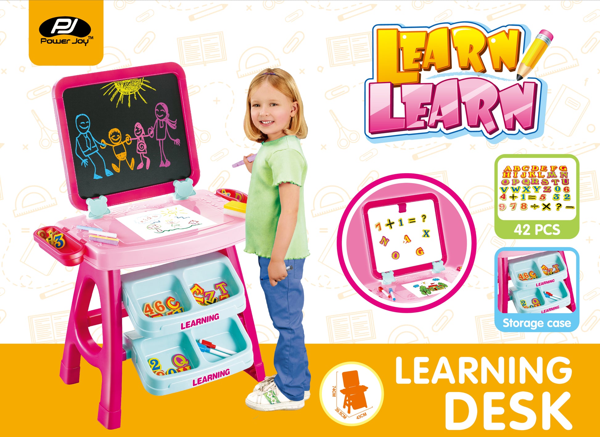 The Power Joy LearnLearn Double-Sided Learning Desk is the perfect educational toy for kids. It features a double-sided design with a chalkboard on one side and a magnetic board on the other, providing your child with endless possibilities for creativity and learning. The desk is made of high-quality, non-toxic ABS material, ensuring safe and durable playtime for your child. Measuring at a big size of L 43cm x W 39.5cm x H 74cm, this learning desk is perfect for kids of all ages. Give your child the gift of imagination and creativity with the Power Joy LearnLearn Double-Sided Learning Desk