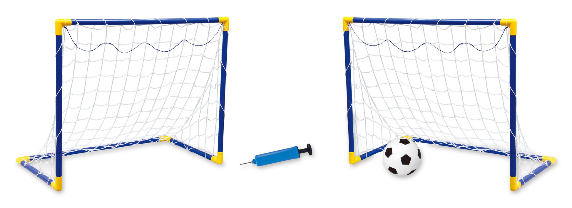 Turn any indoor or outdoor space into the ultimate soccer field and play for hours! Your kids can play it like a real soccer activities with his/her friends. In order to increase the variety of indoor/outdoor games, includes inflatable soccer ball and a little pump to the package.Easy to install, promotes your kids manipulative ability.Lightweight and portable, you can use it indoors or outdoors.Two 35cmX45cmX65CM D3.5CM football goal with net, 10cm ball+pump.Durable, sturdy pipe for play to enjoy anytime & anywhere.
