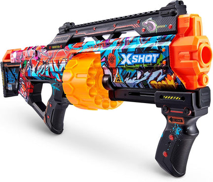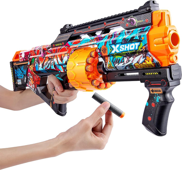 Choose your Skin with the X-Shot Skins Last Stand Game Over Dart Blaster with 16 darts by ZURU! Using state of the art printing technology, X-Shot Skins is the first custom designed blaster that brings the in-game experience of skinning your blaster to the battlefield!